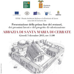 La provincia di Lecce e il FAI (Fondo Ambiente Italiano) presentano la prima fase dei lavori di recupero e il progetto di valorizzazione dell’Abbazia di Cerrate, straordinario cenobio e centro monastico, alle porte di Lecce, risalente agli inizi del XII secolo.